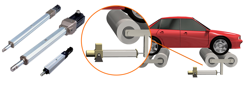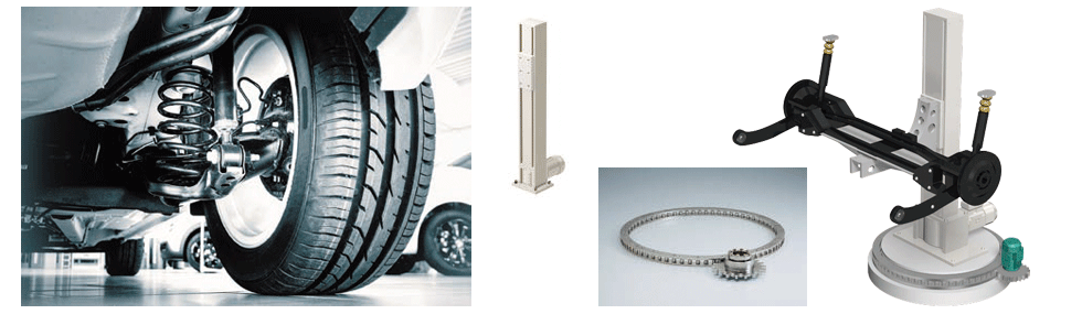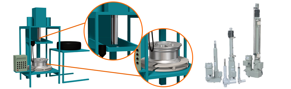 타이어와 휠의 조립 부분에서, 타이어의 측면 고정용으로 츠바키의 전동 실린더 파워실린더가 사용되고 있습니다.