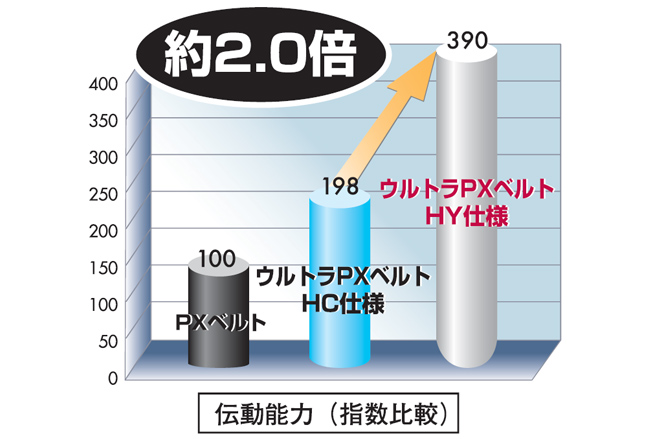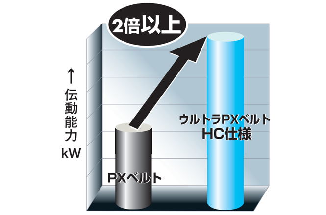 - 전동 능력은 종래품 PX 벨트의 2배 이상