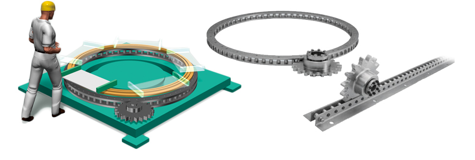 부품의 조립은 턴테이블에 의해 조립, 부품의 설치가 행해지고 있습니다. 스페이스 세이빙이 요구되는 턴테이블에는, 츠바키의 핀기어드라이브유닛 사용되고 있습니다.