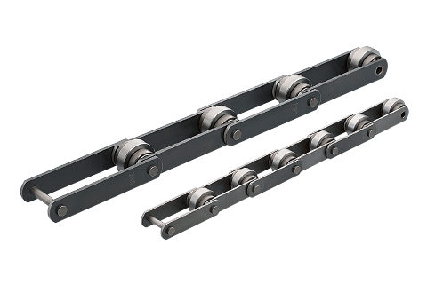 톱 롤러 부착 체인은 더블피치 또는 RS형 롤러 체인의 플레이트를 상부로 연장하고 거기에 자유롭게 회전하는 톱 롤러를 장착한 프리 플로우 체인입니다. 톱 롤러에 경질 크롬 도금+버프 처리한 사양 등이 있어 워크나 분위기에 맞춘 선정이 가능합니다.