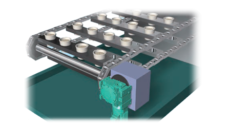 인인화로 디패너 부분을 자동화하기 위해 제품 상부에 구동부의 배치가 필요하게 되었습니다. 이물질 혼입의 위험을 억제하기 위해 클린 베이어를 채용했습니다!