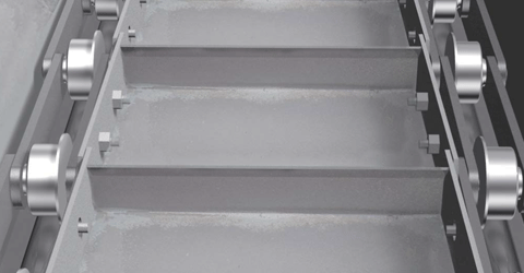 밀폐 케이스 내의 2조의 체인에 장착된 비행은 수평부에서는 플로우 컨베이어의, 수직부에서는 버킷 엘리베이터의 원리로 수송물을 확실히 반송합니다.
