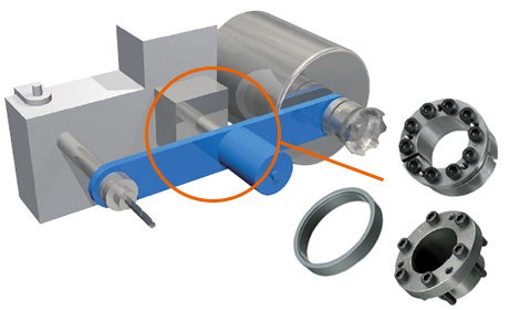 빌트인 스핀들 모터의 로터 체결에 활약하는 파워록.