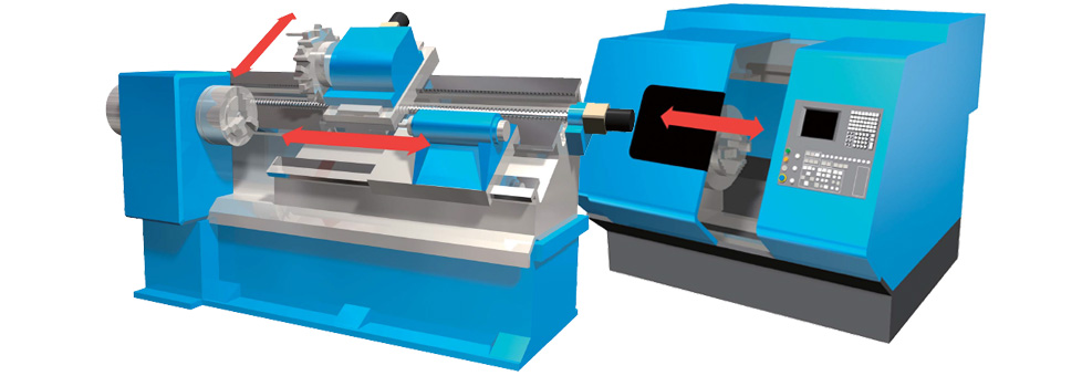 CNC 선반(Computer Numerical(Controlled Lathe))은 컴퓨터 수치 제어(CNC) 장치에 가공 프로그램을 입력하여 공작물을 자동으로 가공하는 선반으로 공작물을 회전시켜 공구를 전후, 좌우로 움직이면서 밀어 넣어 절삭하여 환물 형상 부품을 만들 수 있습니다.