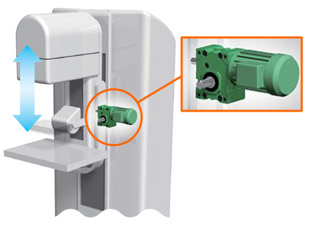 유방 조영술은 선회, 압박, 승강의 각 기구에 웜 감속기를 채용하고 있습니다. 셀프 락에 의한 안전성과 정숙성에 의해, 안심하고 검사를 받을 수 있습니다.