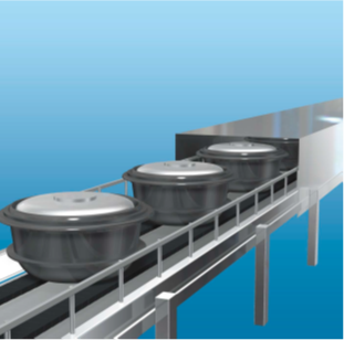 반송물에 상처가 붙기 어려운 플라스틱 톱체인 에서는 고온의 솥을 반송할 때에 내열·고속(KV) 사양도 채용해 주시고 있습니다.
