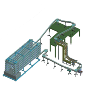 위생적인 스테인레스 스틸 프레임을 표준화하고 레이아웃을 쉽게 구축 할 수있는 수지 체인 컨베이어 시스템입니다. 모듈 구조로 다양한 레이아웃에 대응 가능, 조립도 용이합니다.