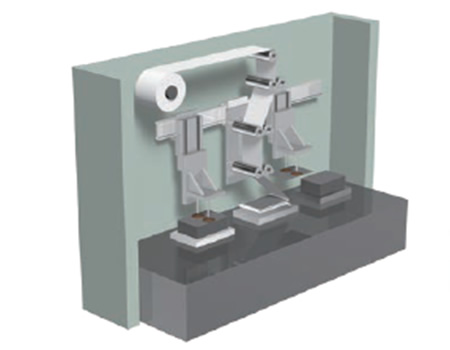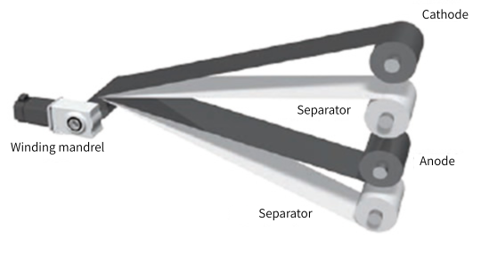 전극과 세퍼레이터를 교대로 고정밀도로 적층합니다.