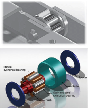 베어링롤러컨베이어체인은 롤러 내부에 원통 베어링를 넣은 당사의 독자적인 구조입니다.