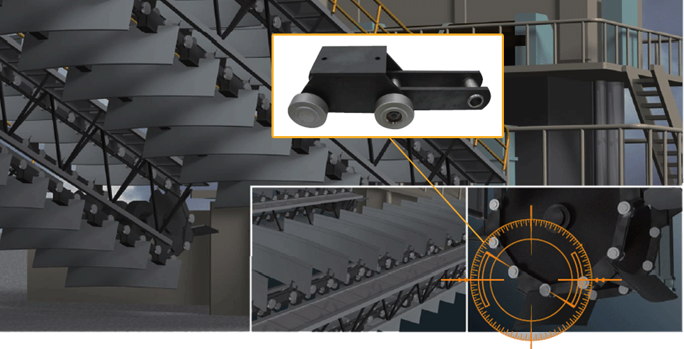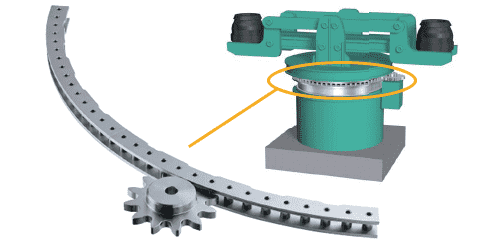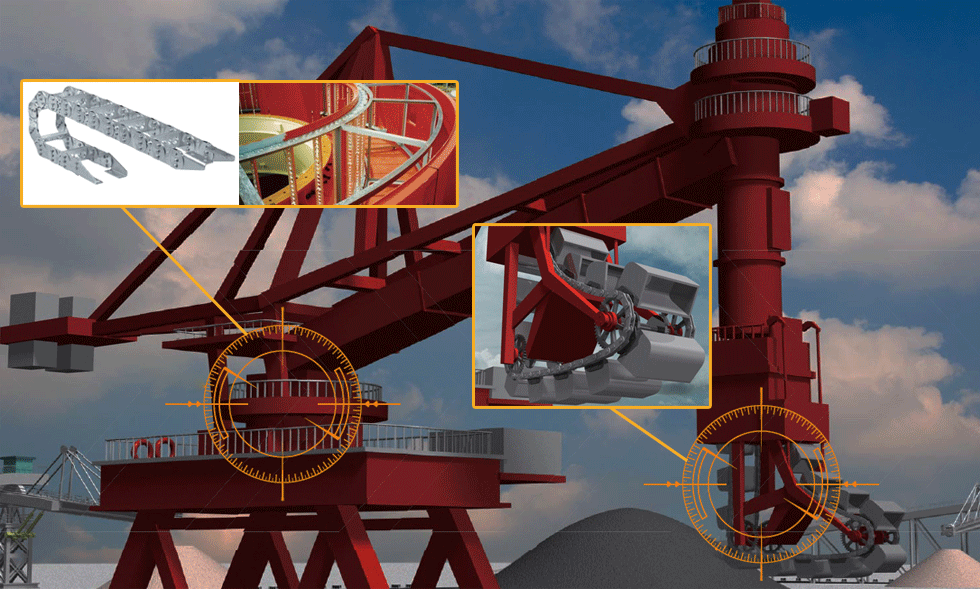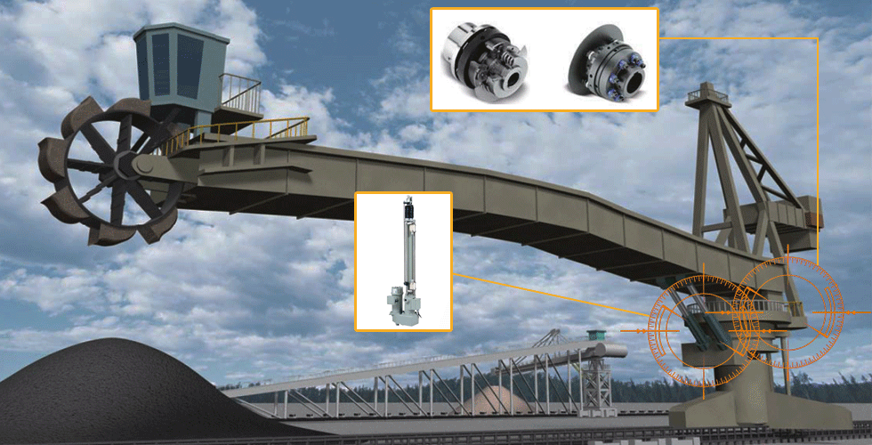 리클레이머의 선회 링 기어는 피니언에 의해 구동됩니다. 츠바키의 기계식 과부하 보호 기기는 대형의 장치에서도 석탄이나 파편이 기어에 막히는 것에 의한 과부하를 즉시 방지합니다.