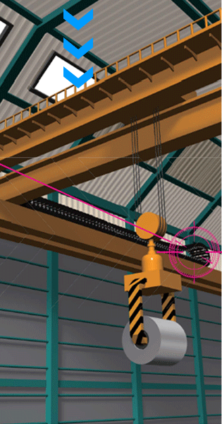 천장 주행 크레인은, 권상·횡행·주행의 3 동작이 가능해, 광범위한 작업 영역을 확보할 수 있기 때문에, 보관 야드나 제품 출하 야드의 코일 운반 등에 사용되고 있습니다.