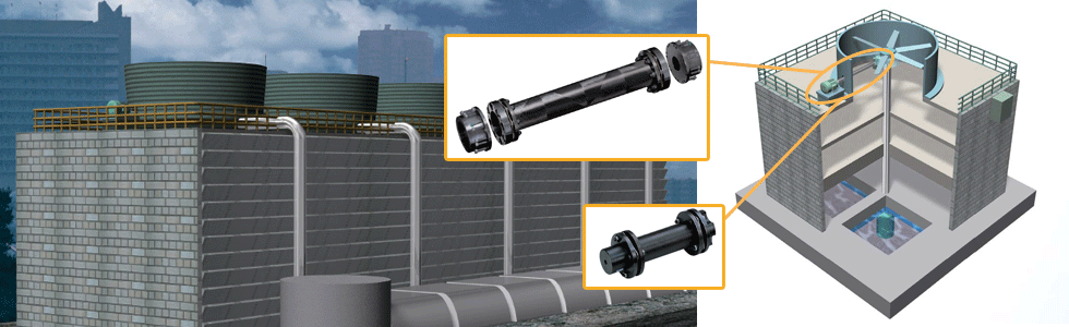 팬 직경이 큰 냉각탑의 경우, 팬을 구동하는 모터와 감속기 사이에는 엑트플렉스 커플링의 롱 스페이서 타입이 최적입니다.