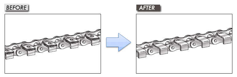 표준 어태치먼트와 특수 어태치먼트를 일체화시킴으로써, 용접 균열에 의한 이물 혼입 리스크를 저감.