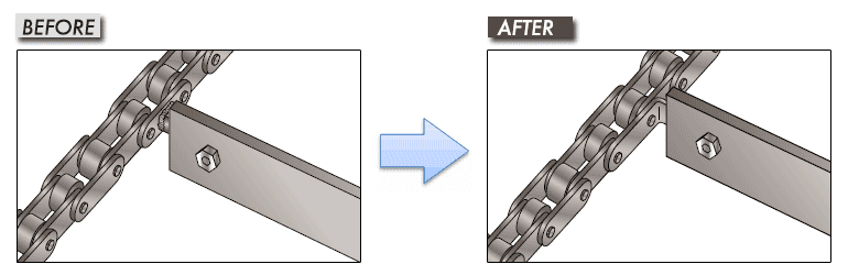 블록 용접에 의한 링크 플레이트의 강도 저하가 보였기 때문에, L형 어태치먼트를 제안.