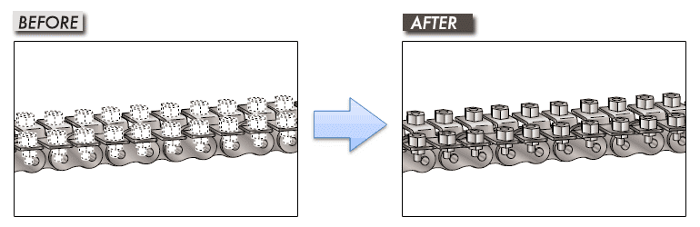 • ・체인의 가공에 필요한 공수와 그에 따른 인건비의 삭감.