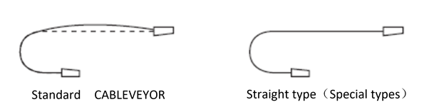 표준 케이블 베이어는 지지물질량을 고려하여 무부하 시 프리스팬부가 약간 팽창하도록 제작하고 있습니다. 그에 비해 스트레이트 사양은 프리스팬부의 부풀림을 없앤 특형 사양입니다. 케이블 베이어의 부풀림이 공간적으로 문제가 있거나 외관상 바람직하지 않은 경우에 유효합니다.