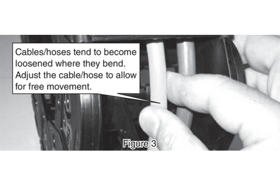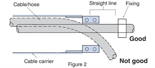 케이블 호스는 직선 상태에서 케이블 베이어 안에 있어야 합니다. (그림 2 참조)