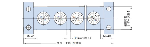 | 서포터 높이 | 서포터 구멍 최대 직경 | 케이블 호스 최대 외경 |