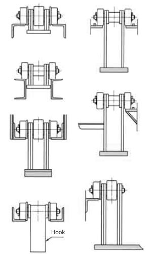 대형 컨베이어 체인의 원활한 운전을 위해, 롤러 형식에 의한 운반측· 리턴측의 가이드 방법 예를 다음에 나타냅니다.