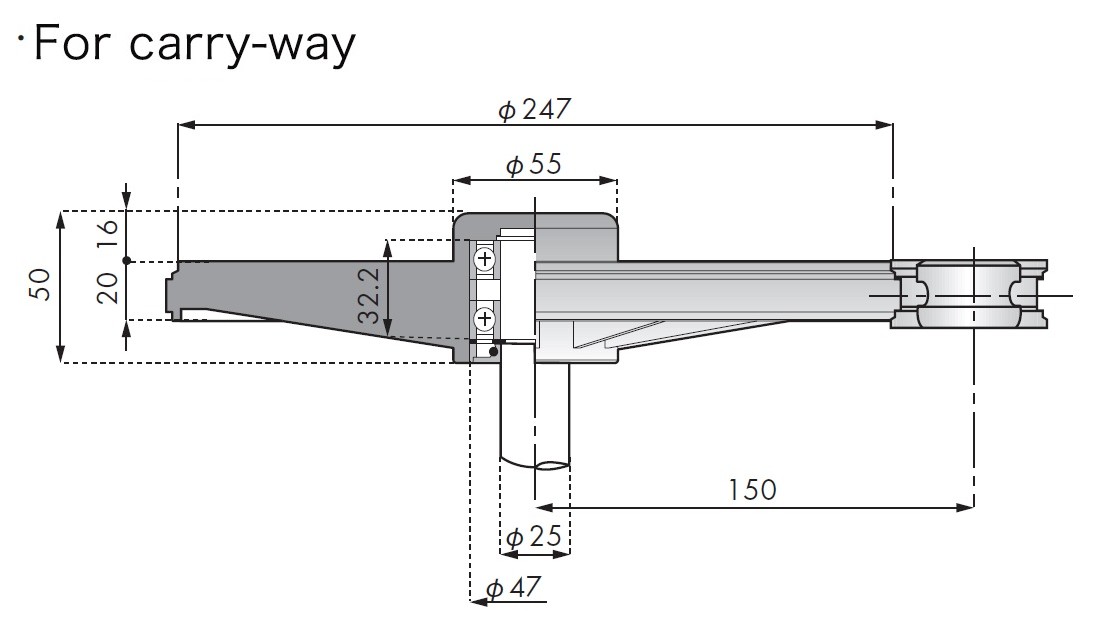 1.搬送側用と帰り側用はシャフト貫通の可否のみが異なります。