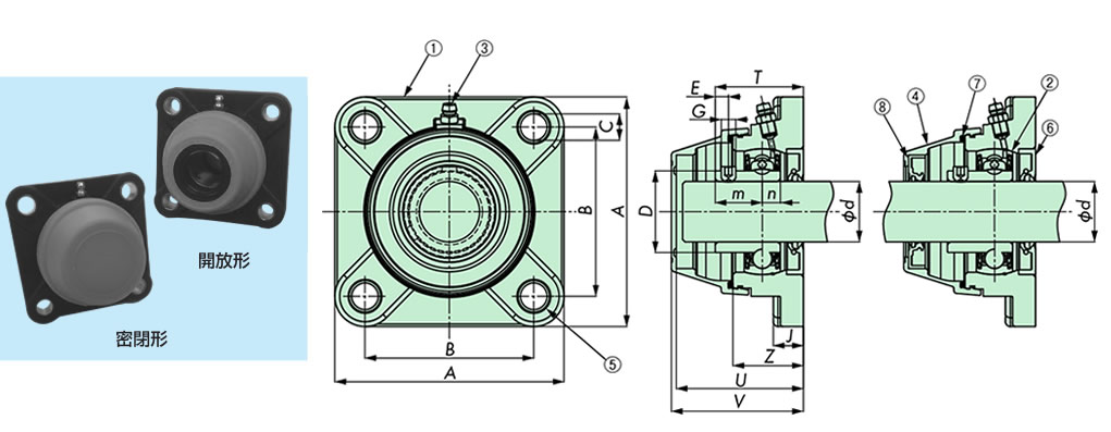 | 형번 | 모양 | 베어링의 기본 정격 하중 kN |