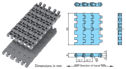 • ・체인 피치=12.7mm의 작은 피치로, 경량인 소용기 반송에 최적입니다.