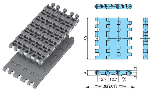 • ・チェーンピッチ=12.7mmの小さなピッチで、軽量な小容器搬送に最適です。