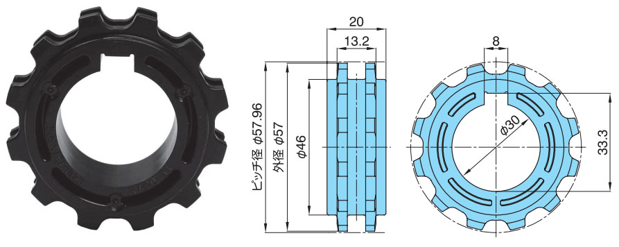 4. 일체형 스프로킷 WT-N1500-12T30을 사용하는 경우, 사행 방지 어태치먼트가 있는 모듈에 걸리는 스프로킷의 키 길이를 30mm로 하십시오.