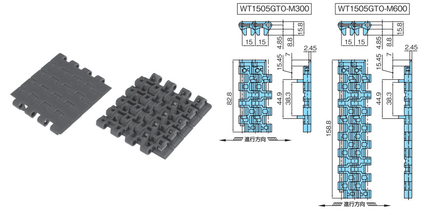 플라스틱모듈러체인 WT1505GTO-M형 주요 제원