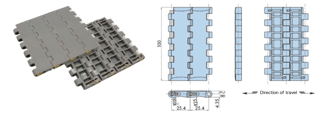 プラスチックモジュラーチェーンWT2525-M形 主要諸元