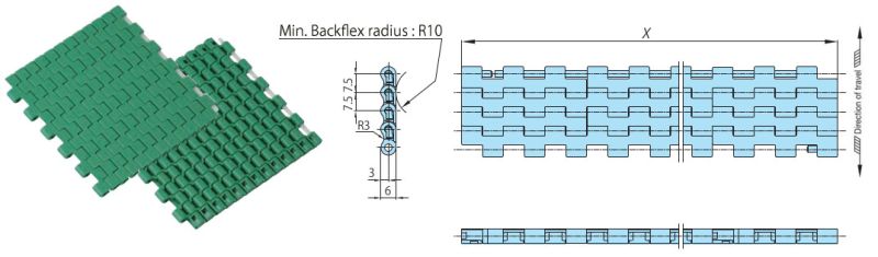 プラスチックモジュラーチェーンWT0705-W形 主要諸元