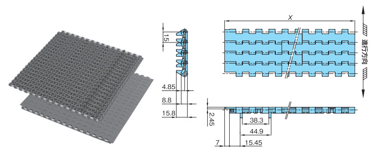 • ・チェーン端面に鍔が付いているので、直交搬送に最適です。