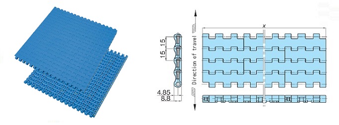 プラスチックモジュラーチェーンWT1515-W形 主要諸元