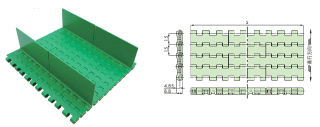 プラスチックモジュラーチェーンWT1515F-W形 主要諸元