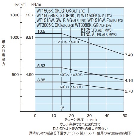 • 주) 2. MPD 사양의 최대 허용 장력 은 표준 사양의 80% 정도, MPW 사양의 최대 허용 장력 은 표준 사양의 40% 정도입니다.