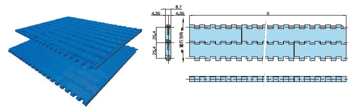 • ・幅85mmと170mmのモジュールリンクの組合せでチェーンを構成しています。