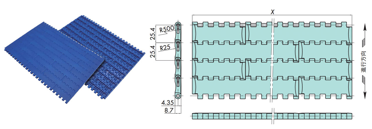 プラスチックモジュラーチェーンWT2525-K形 主要諸元