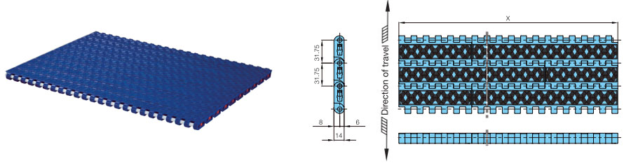 プラスチックモジュラーチェーンWT3109-W形 主要諸元