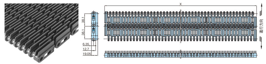 プラスチックモジュラーチェーンWT3827-K形 主要諸元