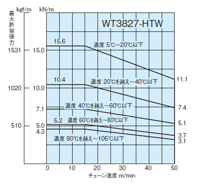 • 주) 2. MPD 사양의 최대 허용 장력 은 표준 사양의 80% 정도, MPW 사양의 최대 허용 장력 은 표준 사양의 40% 정도입니다.