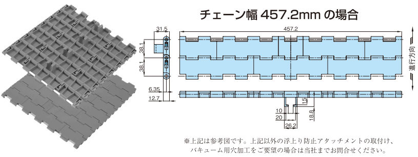 プラスチックモジュラーチェーンWT3835-T形 主要諸元