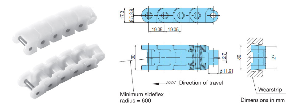• · RSP60의 곡선 타입. 곡선 컨베이어에서도 플라스틱블록체인 사용할 수 있습니다.