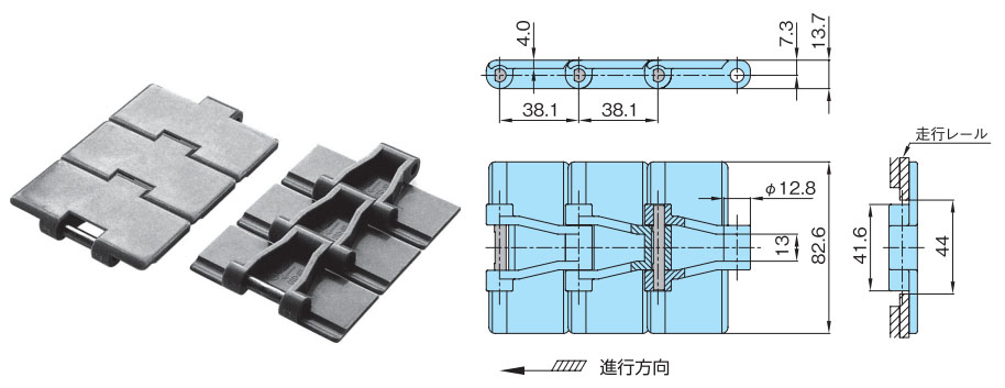 플라스틱 톱 체인 TP-OTD형 주요 제원