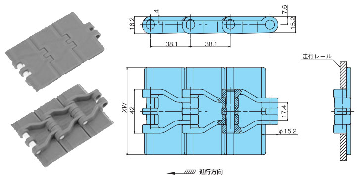 • ・曲線搬送用プラトップチェーン(TTUP,TPU形)と同じスプロケットが使用可能。部品の共有化が可能です。