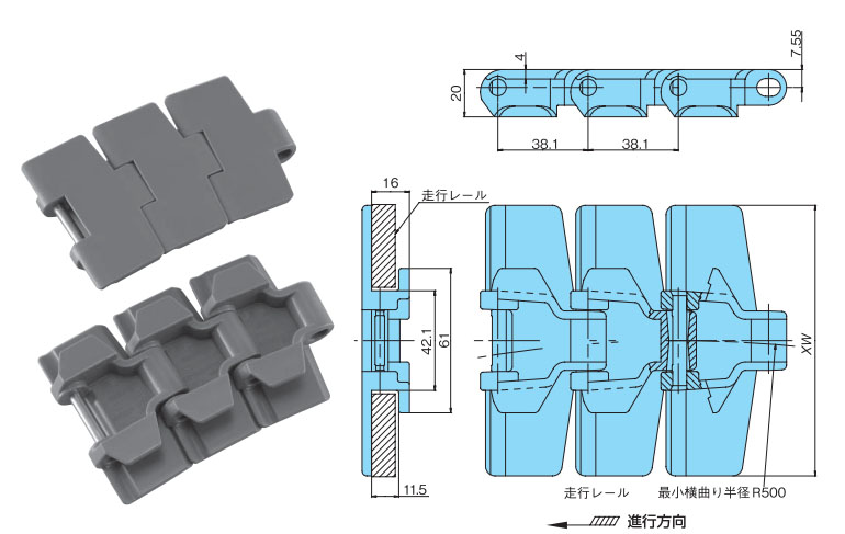 • ・TPU形よりリンク高さが小さく、コンパクトなレイアウトが可能です。