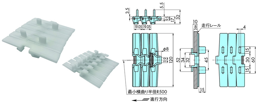• ・체인 피치 19.05 mm로 종래의 TPU형의 1/2의 체인 피치를 채용.