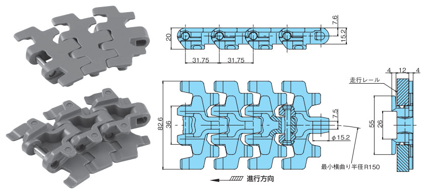 プラトップ®チェーンTPUSR826P形 主要諸元