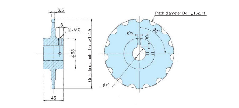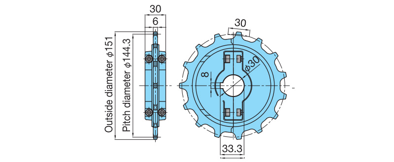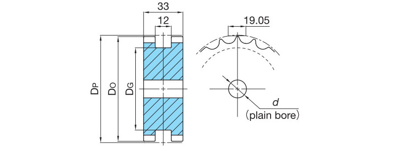 위 표 이상의 잇수는 RS 스프로킷 B형으로 사용할 수 있습니다. 스테인리스 사양의 경우도 마찬가지입니다.