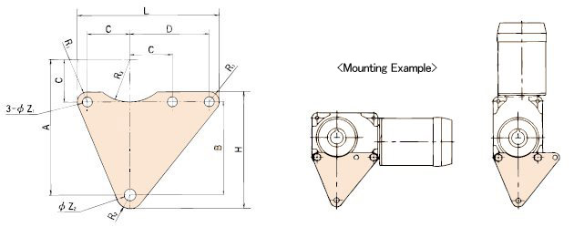 R:설치 형식이 다리 설치(L)인 경우, 모터측에서 보고 중실의 출력축이 우측으로 나오는 타입입니다.