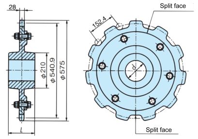 - 2할(C할형)·교환치식(링 교체)을 라인업, 교환 공수를 대폭 단축하고, 축의 분해 불필요로 스프로킷 또는 마모부만의 교환으로 부품 비용과 폐기물을 삭감, 메인터넌스 효율 향상·코스트 저감·폐기물 저감에 공헌합니다.